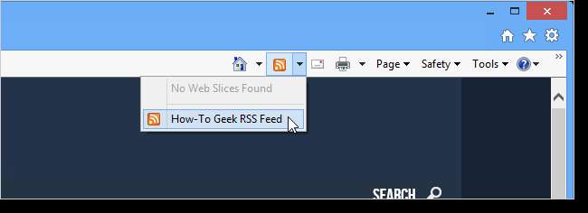 Klik op de pijl naast de RSS-knop op de opdrachtbalk en selecteer de How-To Geek RSS-feed.