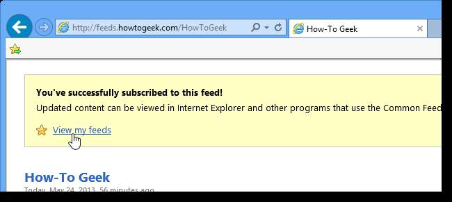 U zou een bericht in het gele vak moeten zien waarin staat dat u zich met succes op deze feed heeft geabonneerd. Klik op de link Bekijk mijn feeds om een lijst met uw feeds te zien.
