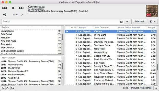 Ten slotte legt Quod Libet veel nadruk op het laten organiseren van uw muziek op uw manier, en normale uitdrukkingen maak het doorzoeken van uw verzameling de meest opvallende eigenschap van deze applicatie. Je moet zeker alle manieren lezen waarop je door je muziek kunt zoeken, want het is echt indrukwekkend.