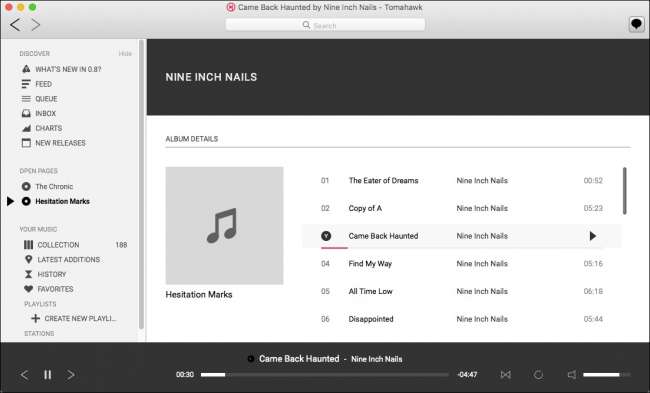 Tomahawk verschilt een beetje van de andere muziekspelers op deze lijst. Het is een gestroomlijnde, snelle, open-source applicatie die niet alleen je muziek zonder gedoe afspeelt, maar ook functies heeft die niet op andere spelers voorkomen, waaronder: