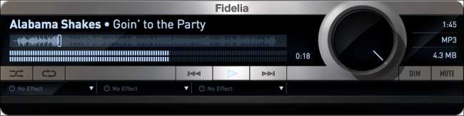 Fidelia is een eerbetoon aan hifi-audiosystemen uit het verleden met een slanke, glanzende interface die lijkt op een ouderwetse premium head-unit. Het ziet er mooi uit en toont trackdetails, audiogolfvormen en stereoniveaus. Het biedt ook vier formaatopties, waaronder een minispeler.