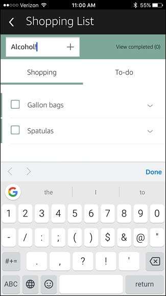 Als je liever niet knoeit met apps van derden om je echo van veraf te besturen, kun je nog steeds iets aan je boodschappenlijst toevoegen door de Alexa-app op je telefoon te gebruiken.