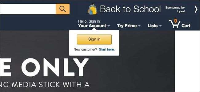 Je kunt ook dingen aan je Alexa-boodschappenlijst toevoegen vanaf de website van Amazon in elke webbrowser. Ga naar Amazon.com en log in op uw account als u dat nog niet bent.