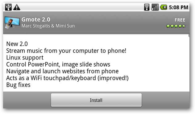 - GMote-app geïnstalleerd vanaf de Android Market.