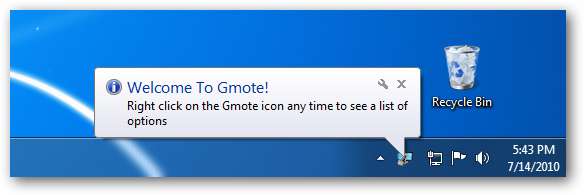 Uw GMote-server wordt in het systeemvak uitgevoerd.
