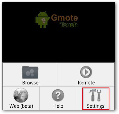 Om de instellingen voor gevoeligheid en versnelling te wijzigen, drukt u op de menuknop van Android en selecteert u Instellingen terwijl u zich op het GMote-aanraakscherm bevindt.