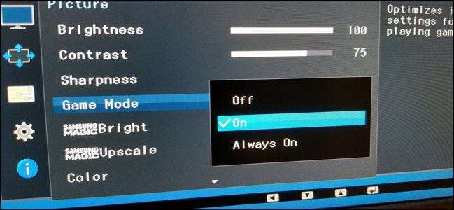 Dat brengt ons bij de spelmodus. Wanneer u de gamemodus op sommige monitoren en televisies inschakelt, verwijdert dit een deel of alle bewerkingen die het scherm met het beeld doet om het zo snel mogelijk van de bron naar het schermpaneel te krijgen. Over het algemeen betekent dit dat u zich een paar milliseconden moet scheren, alsof u van 10 ms vertraging naar 6 ms gaat.