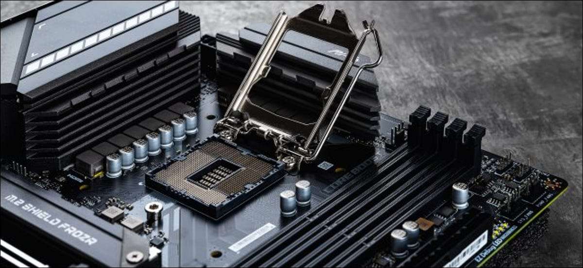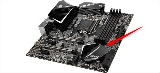 Om te zien of een moederbord compatibel is met uw CPU, kijk dan naar de chipset, die is gehuisvest aan het einde tegenover de CPU-aansluiting en bedekt met een koellichaam. Het wordt ook vaak aangeduid als de Southbridge.