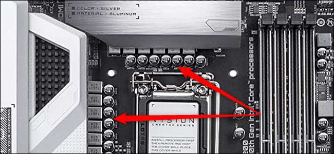 Om de CPU aan de CPU aan te geven, moet de spanning uit de stroomvoorziening komen tot iets ongeveer 1,2 tot 1,3 volt. Het kan hoger of lager gaan dan dit, afhankelijk van hoe Power-honger de CPU is en of het wordt overklokt. Om de kracht voor de CPU af te stappen, vertrouwt het moederbord op zijn VRM. De VRM bestaat uit drie primaire componenten: condensatoren, chokes en MOSFET's. Er is ook een pulsbreedtemodulator (PWM) evenals bestuurder geïntegreerde circuits, maar wanneer mensen over VRMS praten, bespreken ze meestal de drie primaire componenten.