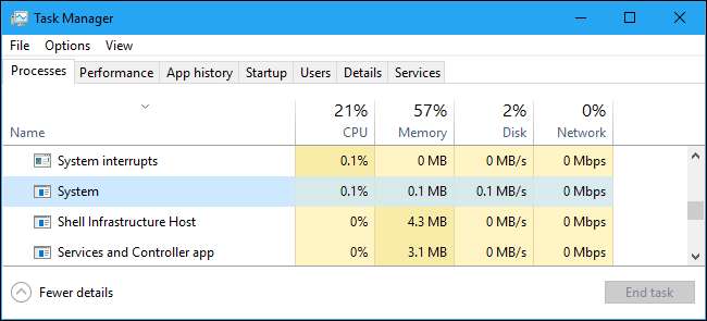 Aan Creators Update van Windows 10 , kunnen we bevestigen dat gecomprimeerd geheugen alleen wordt weergegeven onder Geheugendetails, en dat het systeemproces 0,1 MB aan gebruik op ons systeem blijft, zelfs als het systeem veel gecomprimeerd geheugen heeft. Dit scheelt verwarring, aangezien mensen zich niet afvragen waarom hun systeemproces op mysterieuze wijze zoveel geheugen gebruikt.
