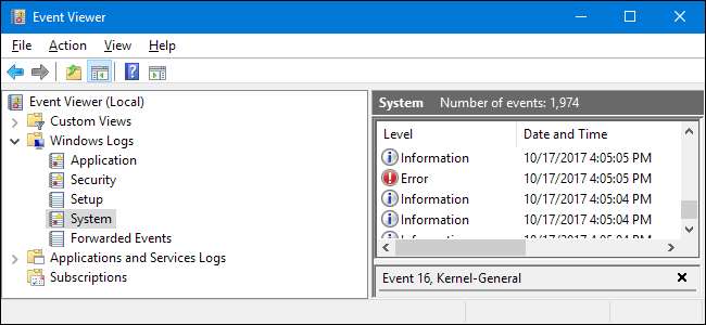Als vuistregel, ervan uitgaande dat uw pc correct werkt, kunt u de fouten en waarschuwingen die in Logboeken verschijnen vrijwel negeren. Dat gezegd hebbende, is het de moeite waard om een basiskennis van de tool te hebben en te weten wanneer deze nuttig voor u kan zijn.