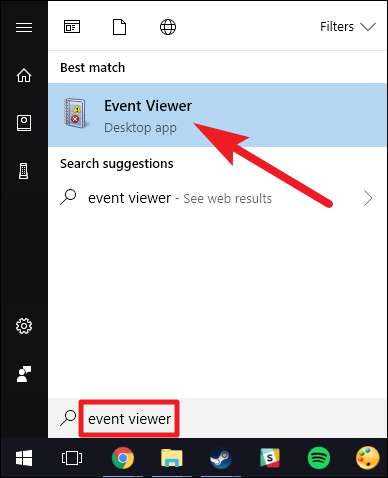 Om de Event Viewer te starten, drukt u op Start, typt u "Event Viewer" in het zoekvak en klikt u op het resultaat.
