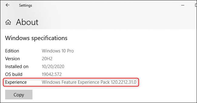 Als je naar Instellingen & gt; System & GT; Info en scroll naar beneden naar “Windows specificaties,” je een lijn genaamd zie “Experience.” Het waarschijnlijk zegt dat je de “Windows Feature Experience Pack” geïnstalleerd.