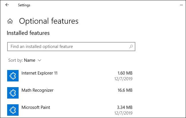 Zoals Foley opmerkt, wordt de Windows Feature Experience Pack vermeld als een van de vele “ Functies on Demand ”In Windows 10. Bijvoorbeeld, Microsoft Paint is nu een “functie op de vraag.”