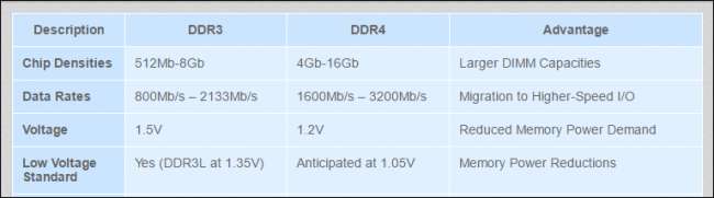 DDR4 RAM verscheen vorig jaar voor het eerst als onderdeel van de Haswell-E-uitrol. In onafhankelijke tests uitgevoerd door Anandtech , in vergelijking met DDR3 met DDR4 op een compatibele Haswell-gamingopstelling, waren de verschillen in de echte wereld tussen de concurrerende geheugentypes bijna nihil.