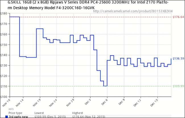 Zoals elke nieuwe technologie op de markt, zullen sticks van DDR4 RAM duidelijk duurder zijn dan hun DDR3-tegenhangers. Bij het vergelijken van twee RAM-modellen van dezelfde fabrikant, ontdekten we dat een paar 8GB DDR3 Savage-sticks (16GB totaal) geklokt naar 2400Mhz kost $ 103,99 op Newegg , terwijl hetzelfde paar in DDR4 kost $ 129,99 - dat is een stijging van ongeveer 21%. Dat is alles bij elkaar genomen niet zo erg, maar het is nog steeds duurder. Dankbaar, de kosten van DDR4 zijn het afgelopen jaar aanzienlijk gedaald , en zal dit alleen blijven doen als mensen het massaal gaan adopteren.