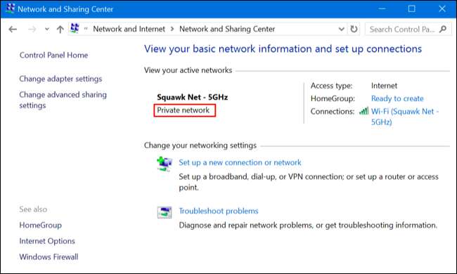 Windows 10 probeert duidelijk dingen te vereenvoudigen door verdere opties uit de app Instellingen weg te laten en alleen te verwijzen naar of een netwerk ‘vindbaar’ is of niet. Er zijn echter nog steeds verschillende opties in het configuratiescherm die op openbare en particuliere netwerken anders werken.