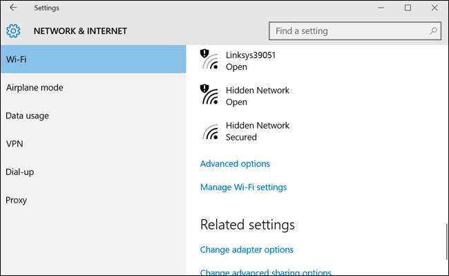 Als u een wifi-verbinding gebruikt, maakt u eerst verbinding met het wifi-netwerk dat u wilt wijzigen. Start de app Instellingen, selecteer 'Netwerk en internet', selecteer 'Wi-Fi', scrol omlaag en klik op 'Geavanceerde opties'.