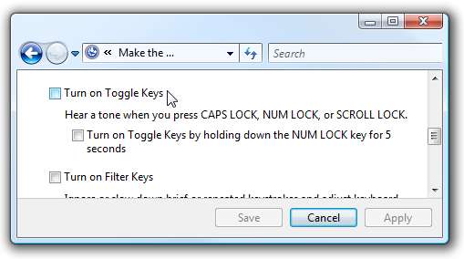 Als u eenmaal het dialoogvenster Toegankelijkheidsopties heeft geopend, moet u ervoor zorgen dat "ToggleKeys gebruiken" niet is aangevinkt.