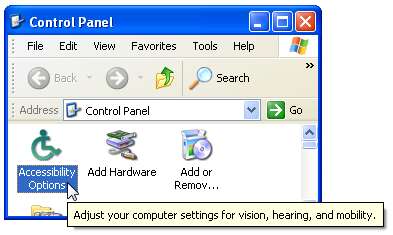 Open het Configuratiescherm en kies vervolgens het pictogram "Toegankelijkheidsopties", meestal in de linkerbovenhoek als u de klassieke weergave gebruikt.