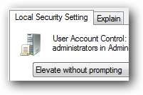2) Godta automatisk UAC-instruksjoner kun for administratorer
