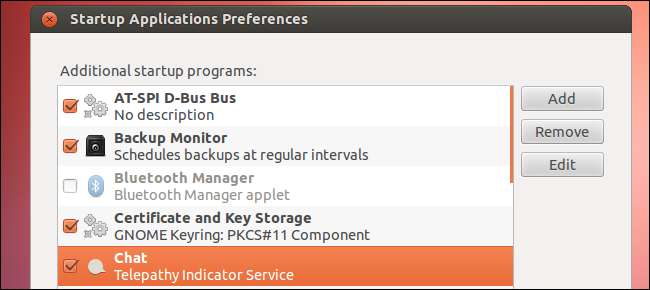 Ubuntu skjuler de fleste av systemets standard autostartoppføringer fra denne dialogen. For å se dem, kjør følgende kommando i en terminal:
