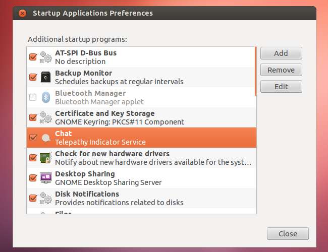 Ikke deaktiver en autostartoppføring med mindre du forstår hva den gjør. For eksempel, hvis datamaskinen din ikke har Bluetooth-maskinvare, kan du deaktivere programvaren Bluetooth Manager - men ikke deaktivere Ubuntu One hvis du bruker den.