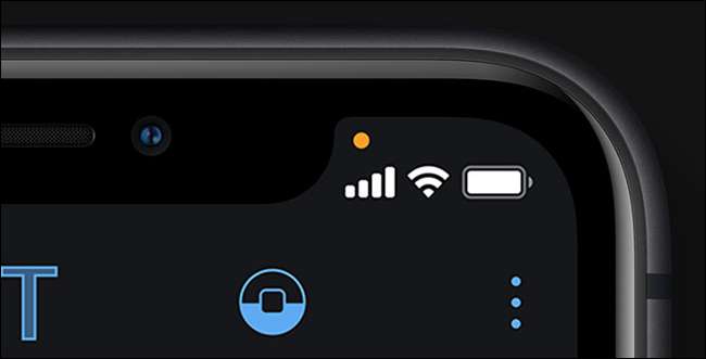 Når en app bruker mikrofonen eller kameraet ditt, ser du det en liten oransje eller grønn prikk i statuslinjen på toppen. Den vises rett over cellesignalstyrkeindikatoren.
