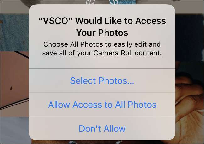 Du kan også begrense apptilgang til bare bestemte bilder i iOS 14. Dette forhindrer at en app har uhindret tilgang til hele bildebiblioteket ditt. Du kan ta denne avgjørelsen når en ny app ber om tillatelse til å få tilgang til bildene dine ved å trykke på "Velg bilder" i popup-vinduet.