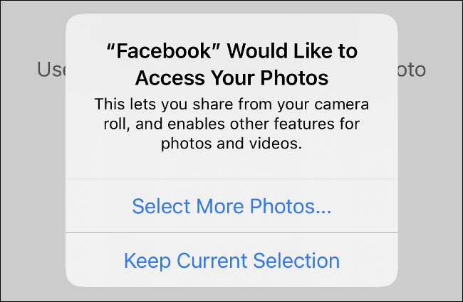 For eksempel ga vi Facebook tilgang til et svært begrenset utvalg av bilder. Etter å ha drept appen og prøvd igjen spurte iOS om vi ønsket å velge flere bilder, eller om vi var fornøyd med det nåværende valget.