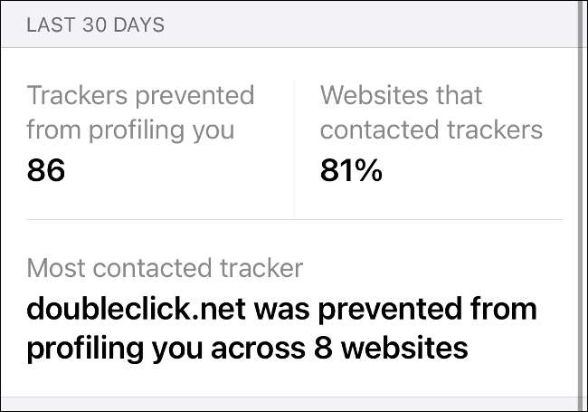 Hvis du trykker på “AA” i Safaris adresselinje og deretter trykker på “Personvernrapport”, vil du se en liste over kjente sporere for det nåværende nettstedet. Du vil også se en detaljert rapport om hvor mange ganger trackere har forsøkt å spore deg de siste 30 dagene.