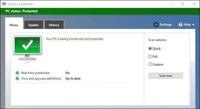 Hvis du bruker tid på de skyggefulle hjørnene på internett, vil du kanskje ha noe litt sterkere Avira eller Kaspersky , men for de fleste hjemmebrukere, bør Windows Defender være bra.