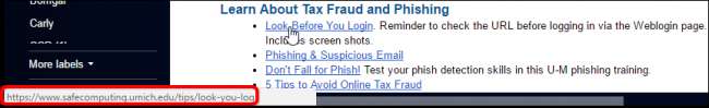 Hvis du vil være virkelig sikker, kan du aldri klikke på lenker i e-post. Men det er ikke realistisk eller praktisk, selv om vi anbefaler at du ikke klikker på e-postkoblinger til sensitive steder som bankens nettsted. Bare gå til bankens nettsted normalt. For andre lenker i e-postmeldinger, er midtveisalternativet å vite hvordan man skal undersøke en lenke før du klikker på den - ja, til og med de fra vennene dine.