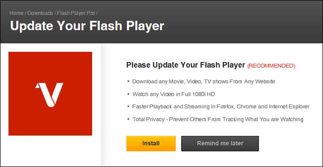 På samme måte må du aldri laste ned eller installere noe du ikke lette etter. Hvis et nettsted forteller deg at Flash er utdatert, må Chrome oppdateres, eller et plugin må legges til, pump bremsene dine. Dette er et vanlig triks for å få deg til å installere noe for en angriper. Hvis du tror popup-vinduet kan være legitimt, vil du fremdeles ikke klikke på det.