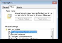 Dette kan gjøres ved å slå på alternativet Vis alltid ikoner, aldri miniatyrbilder i dialogboksen Mappealternativer, som vi tidligere har vist: