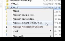 For å åpne en ledetekst i en bestemt katalog, hold Shift-tasten nede når du høyreklikker på en mappe og velger Åpne kommandovindu her. Vi skrev om dette tipset i følgende artikkel: