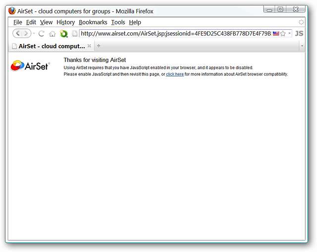 Avhengig av hvor tungt et bestemt nettsted bruker JavaScript, kan du forvente å se varierende resultater i hvordan sidene ser ut. I eksemplet vårt kan du se at AirSet avhenger sterkt av JavaScript, og nettsiden er praktisk talt ikke-funksjonell.