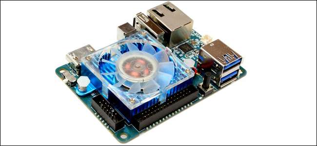 De siste revisjon av ODroid , bygget fra grunnen av med åpen kildekode-bygging av Android i tankene, pakker et seriøst slag takket være en viftekjølt Samsung 8-kjerners CPU. Selv om prisen er nesten dobbelt så høy som for Pi 3B, inkluderer den dobbelt RAM både lyd- og Micro-HDMI-porter. Lagring kommer fra MicroSD-kortsporet om bord. Den større størrelsen og ekstra klaring for viften gjør den mindre ideell for små bygninger, men for en Android-PC som kan løpe ut av esken med bare en skjerm, tastatur og mus, vil du bli hardt presset for å gjøre det bedre.
