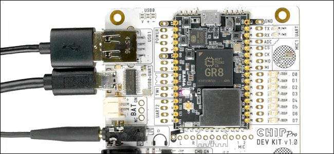 De C.H.I.P. Pro i seg selv er mer en konkurrent til Pi Zero, med et lite fotavtrykk ment for integrering. Den har en enkeltkjerners 1 GHz ARM-prosessor og opptil 512 MB RAM, pluss Wi-Fi og Bluetooth. Men legg til utviklingspakken i en $ 50-pakke, og du får tilgang til USB-strøm og data og en standard hodetelefonkontakt. Du får også et nytt C.H.I.P. Pro for når du er klar til å bygge. Det er et ideelt valg hvis du vil ha et mindre prosjekt.
