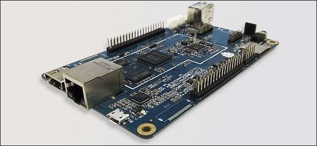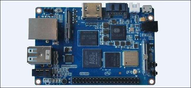 Banana Pi-serien er et alternativ til visse andre fruktige produkter. M3-modellen er superdrevet med en oktakjerners ARM A7-prosessor, 2 GB RAM og de vanlige Ethernet- og trådløse funksjonene. I tillegg til MicroSD-kortsporet, er det en SATA-port i full størrelse for enkle tilkoblinger til standard PC-harddisker og annet tilbehør. HDMI- og hodetelefonporter gjør video og lyd enkelt, men dessverre er det bare to USB 2.0-porter ombord - litt lavt for noe som koster over $ 80.