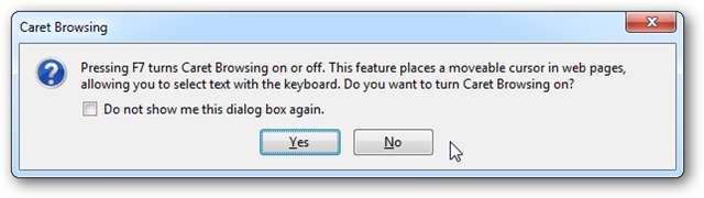 For å fikse dette kan du bare trykke på F7-tasten igjen. Eller hvis du vil gjøre det på: config-måte, filtrer etter tilgjengelighet.browsewithcaret og sørg for at den er satt til false.