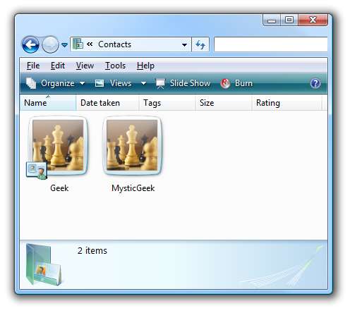 Det viser seg at problemet er at Vista trodde at kontaktmappen min var en bildemappe av ukjent grunn.