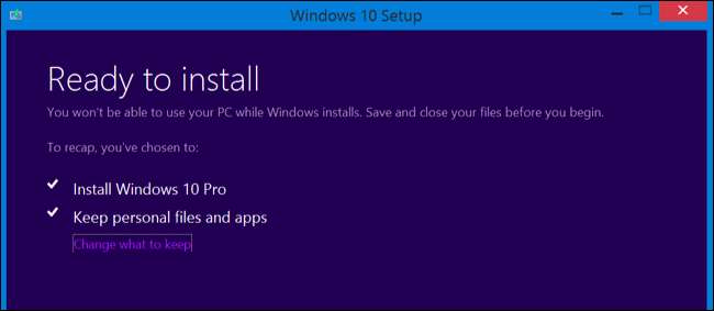 Men hvis du vil leve farlig (og ikke vil kaste bort mye tid), er oppgraderings- og tilbakevendingsmetoden enkel. Last ned først Windows 10-oppgradering verktøyet, kjør det, og godta å oppgradere PC-en til Windows 10.