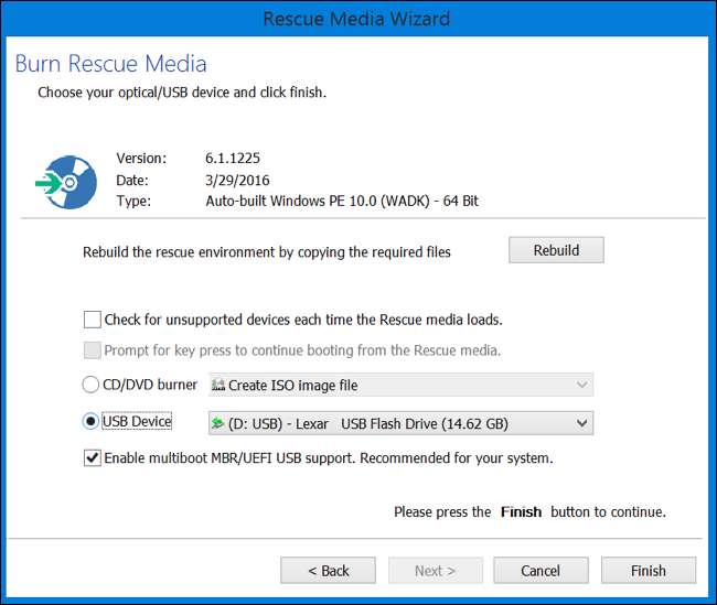 Du trenger også et tredjepartsverktøy for å avbilde stasjonen din. Vi anbefaler Macrium Reflect for dette. Så last ned og installer gratisversjonen på denne siden og lansere den. Du blir bedt om å lage redningsmedier, som du kan bruke til å gjenopprette sikkerhetskopibildet ditt senere. Hvis ikke, klikker du på Andre oppgaver> Opprett redningsmedier. Gå gjennom veiviseren, velg standardalternativene og velg deretter enheten du vil bruke til oppstartsmediet ditt. Du kan enten lage en oppstartbar USB-pinne eller brenne dette redningsmediet til en plate.