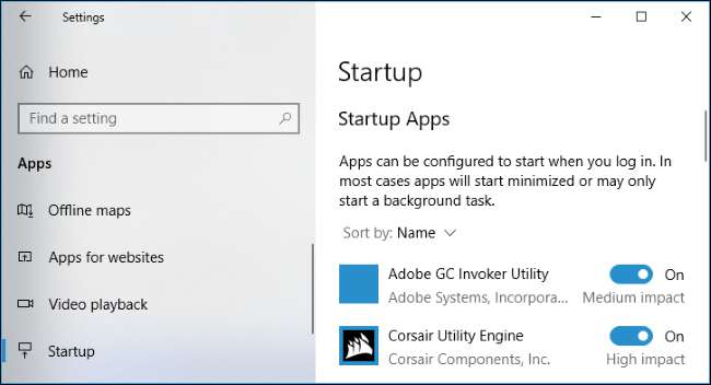 CCleaner kan administrere oppstartsprogrammene dine, men Windows 10 har denne funksjonen innebygd. For å få tilgang Windows 10s oppstartsleder , gå til Innstillinger> Apper> Oppstart. Du kan se hvor stor "innvirkning" apper har på oppstartsprosessen din, og slå oppstartprogrammer på eller av herfra. Et oppstartsprogram med "høy innvirkning" bremser ting mer enn ett med "lite innvirkning."