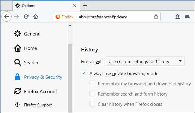 Du trenger faktisk ikke engang å rense nettleserdataene dine. Bare bruk privat surfemodus når du vil ha tilgang til et sensitivt nettsted uten at historikken blir lagret på datamaskinen din. Hvis du aldri vil at nettleseren din skal lagre private data, kan du gjør at nettleseren din alltid starter i privat surfemodus . Dette er bedre enn å tømme nettleserdataene dine i CCleaner, da det forhindrer at data blir opprettet i utgangspunktet.