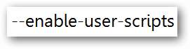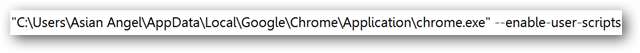 I adressefeltet for “Target:” må du legge til følgende kommando på slutten av målstien å sørge for å legge igjen et enkelt mellomrom mellom det endelige anførselstegnet og kommandoen Aktiver brukerskript .