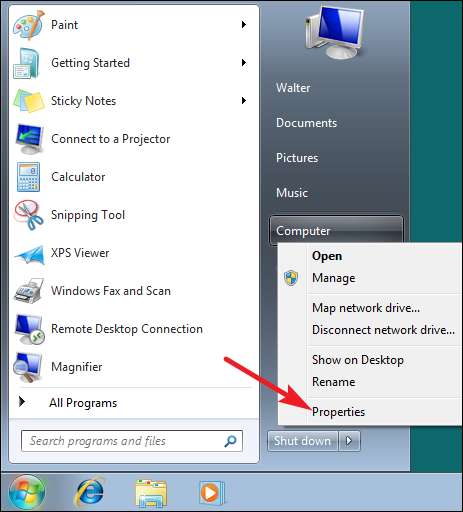 Hvis du bruker Windows 7 eller Windows Vista, trykker du på Start, høyreklikker på "Datamaskin" og velger deretter "Egenskaper".