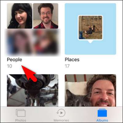 Inne i Album-menyen ser du en oppføring for "People" som ligger blant de eksisterende albumene dine med et lite 2 × 2 rutenett med anerkjente ansikter. Velg albumet.