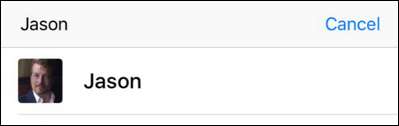 Sluttresultatet er at den valgte personen nå vises øverst, med et større miniatyrbilde.
